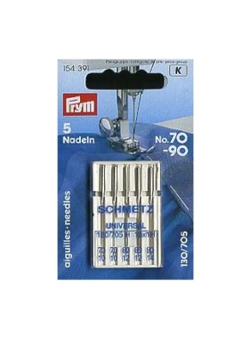 Aiguilles machine universelles. Le lot comprend 5 aiguilles, n°70, 80 et 90.