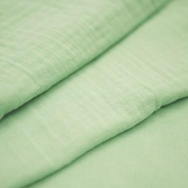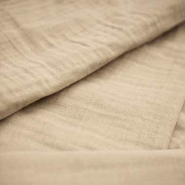 Cette double gaze n’a pas subi de prélavage, elle est donc lisse et non froissée. Ce n’est qu’une fois lavé que ce tissu de coton en double tissage prendra son aspect gaufré si caractéristique. Pour un parfait effet « crépon » nous vous recommandons de prélaver le tissu et de le faire sécher à plat en l’étalant afin d’éviter les marques inesthétiques laissées par la corde et les pinces à linge.