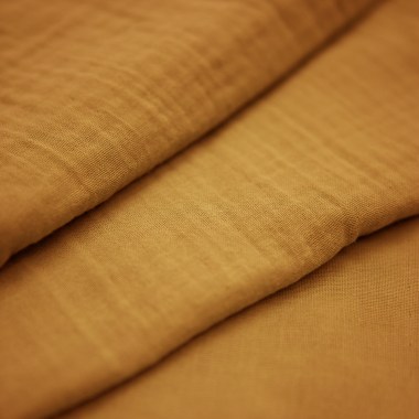 Cette double gaze n’a pas subi de prélavage, elle est donc lisse et non froissée. Ce n’est qu’une fois lavé que ce tissu de coton en double tissage prendra son aspect gaufré si caractéristique. Pour un parfait effet « crépon » nous vous recommandons de prélaver le tissu et de le faire sécher à plat en l’étalant afin d’éviter les marques inesthétiques laissées par la corde et les pinces à linge.